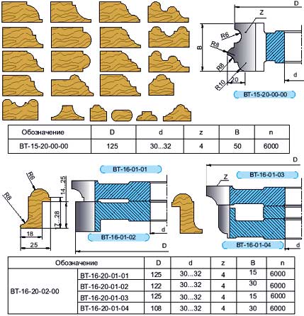 Фрезы мультипрофильные, комплект для изготовления обкладки и штапика дверей